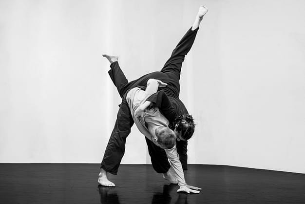 ‘Due corpi, attraverso uno scontro avvolgente, raccontano la complessità delle relazioni umane tra la frenesia dei loro movimenti e l’anelare di uno stato di calma, alternato da sguardi e gesti di un dialogo silenzioso e complice.’